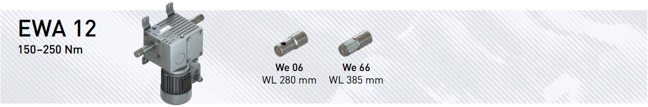 Wszystkie wersje EWA 12 dostępne są z wałem sześciokątnym WE 66 lub wałem okrągłym WE 06, co ułatwia dopasowanie do istniejącej mechaniki, sprzęgieł i akcesoriów w układzie.