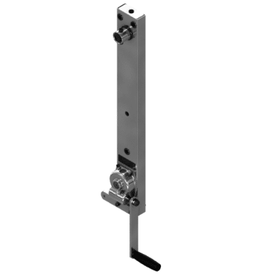 Zastosowanie samoblokującej przekładni ślimakowej oznacza, że system jest stabilny i bezpieczny — po ustawieniu pozycji wału nie dochodzi do samoistnego obracania się wału pod wpływem ciężaru elementów. Taka konstrukcja zwiększa bezpieczeństwo obsługi i ogranicza ryzyko niekontrolowanego ruchu.