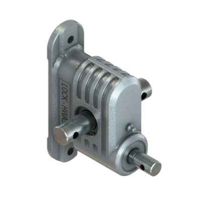 HWA 53 umożliwia przeniesienie i rozdzielenie momentu obrotowego na dwa wyjścia wału, co czyni go idealnym rozwiązaniem do układów wymagających symetrycznego napędu lub równoległej pracy dwóch elementów wykonawczych. Taka konstrukcja ułatwia synchronizację ruchu i zwiększa stabilność całego systemu.
