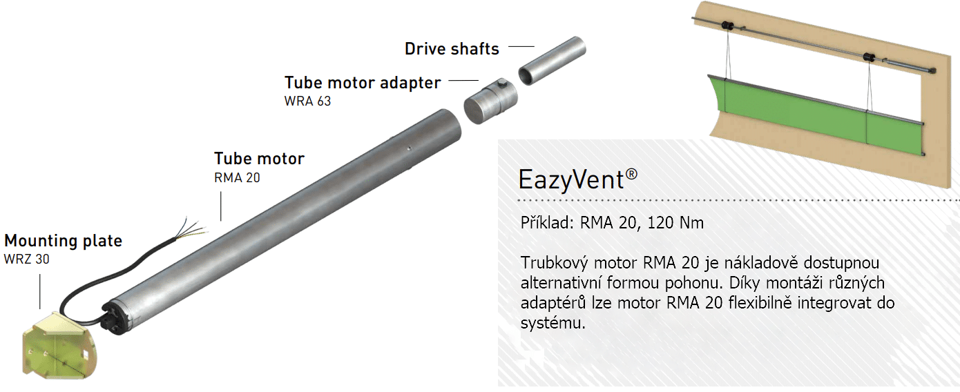 RMA 20 jest przeznaczony do napędzania systemów zwijanych, w których liczy się stabilna praca, powtarzalność ruchu i trwałość. Sprawdza się w aplikacjach takich jak osłony, przegrody i rolety, gdzie napęd pracuje w cyklach i wymaga precyzyjnego ograniczenia skrajnych położeń.
