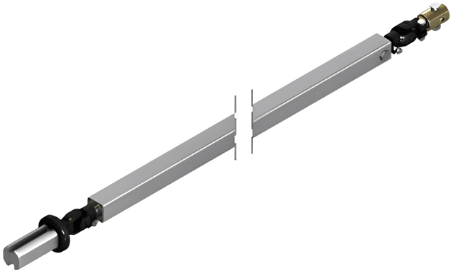 Złącze teleskopowe GKT 01 służy do przenoszenia momentu w mniejszych systemach nawijających VariVent® i pracy przy zmiennym przesunięciu osiowym między napędem a wałem nawijającym. Zapewnia płynną, cichą regulację długości dzięki rolkom oraz konstrukcji na rurze aluminiowej 40 x 40 mm z dwoma przegubami. Dostępne w wersji „32” (adapter zewnętrzny do rury stalowej 32 x 1,5 mm) oraz „47” (adapter wewnętrzny do rury aluminiowej 50 x 1,5 mm). Wykonanie ze stali nierdzewnej do użytku na zewnątrz.